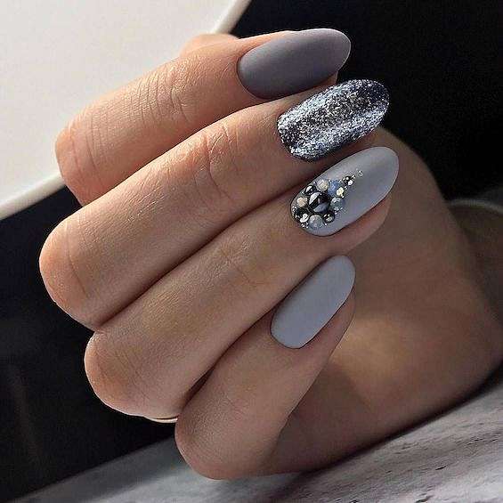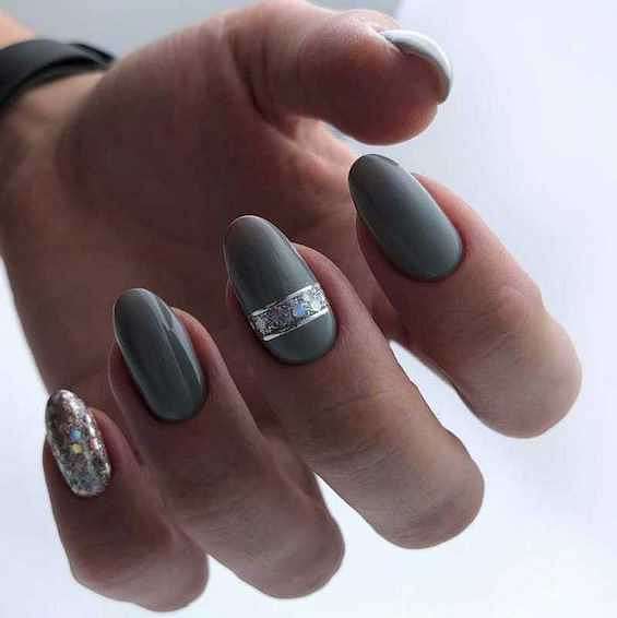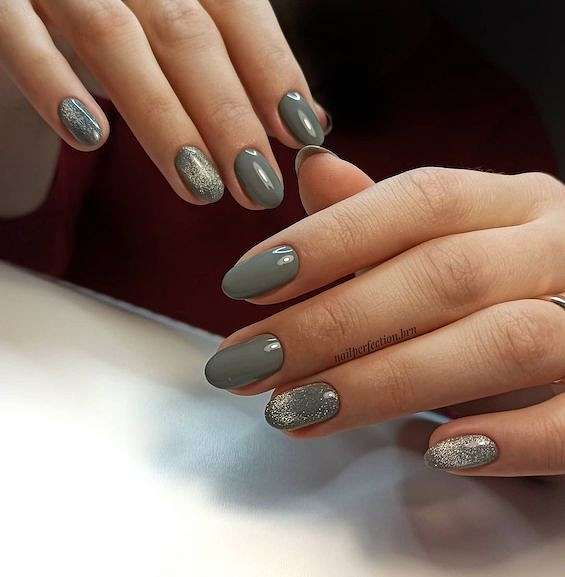 Серый маникюр с блестками