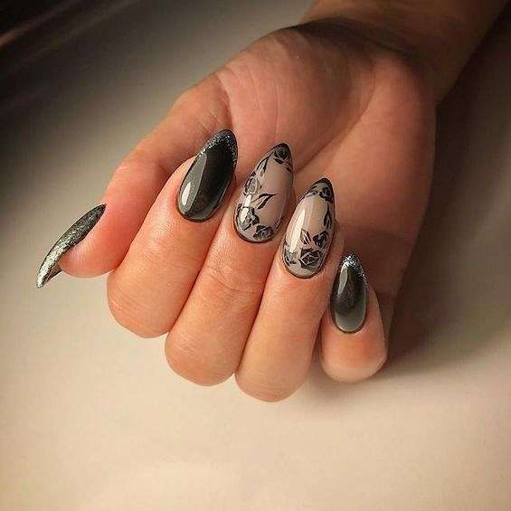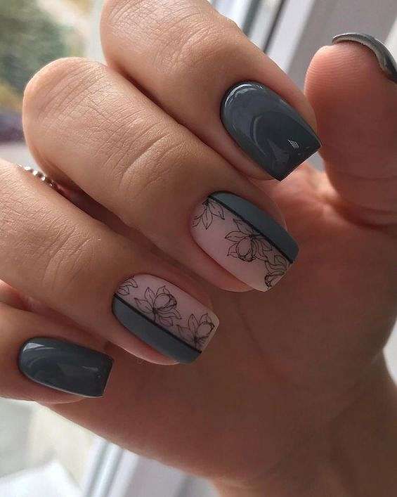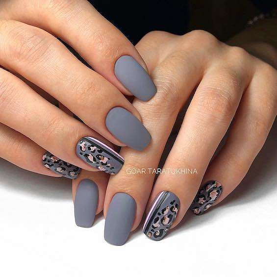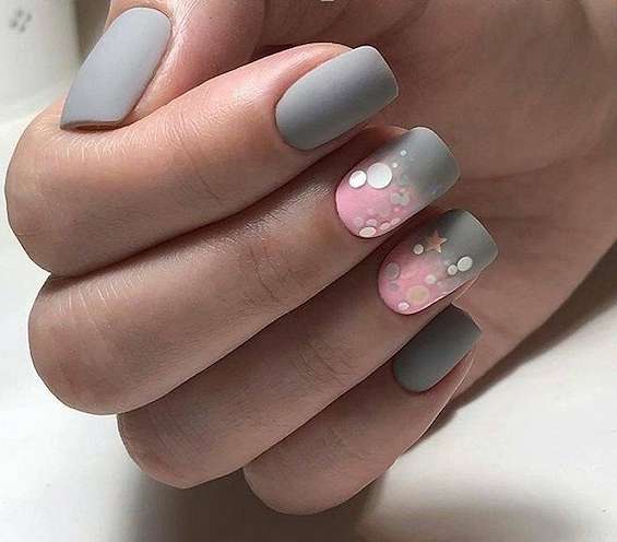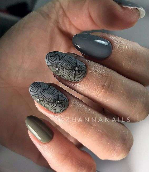 Серый маникюр с дизайном