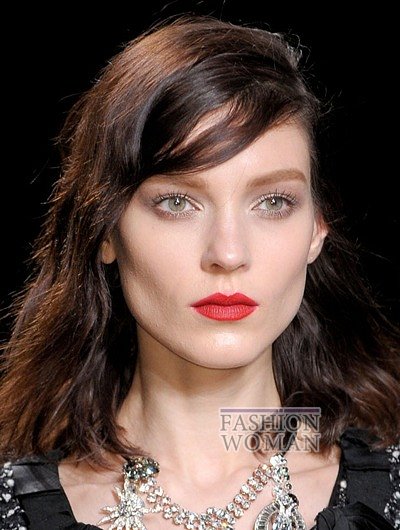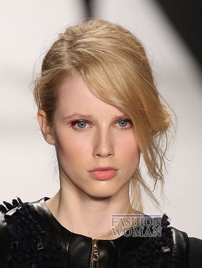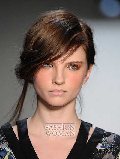 Кроме прямой густой челки, актуальны также варианты гладкой челки, зачесанной набок (Christian Dior, Diane von Furstenberg) или объемной, уложенной волнами (Rebecca Minkoff, Suno).