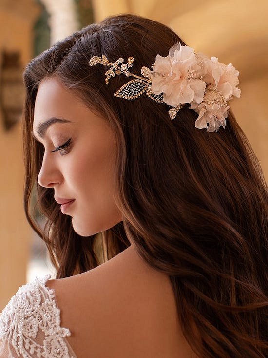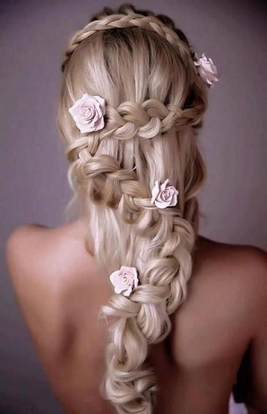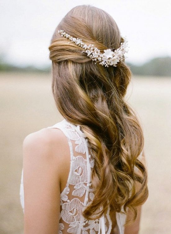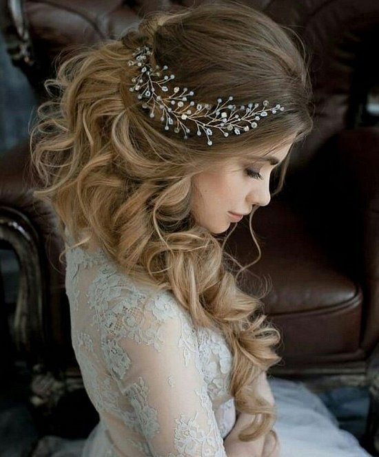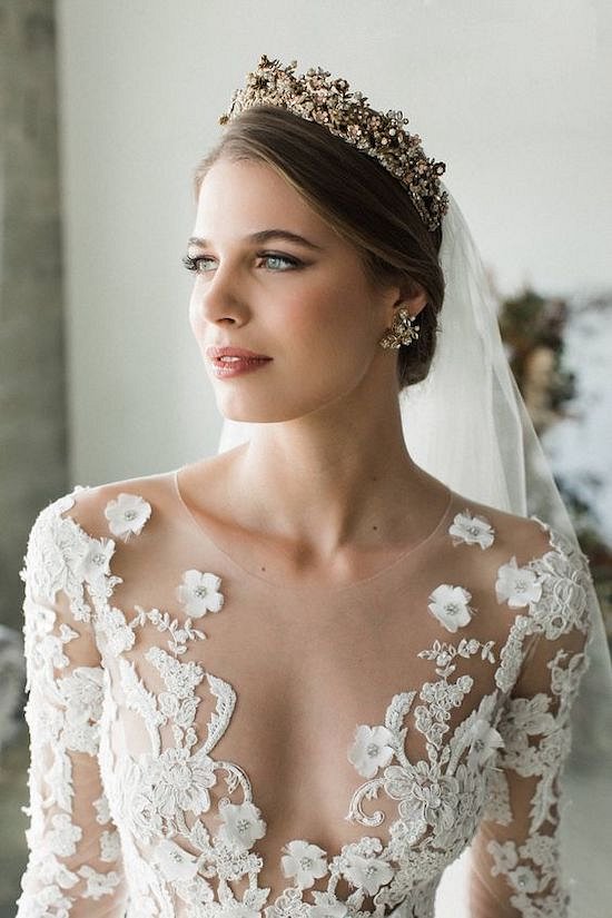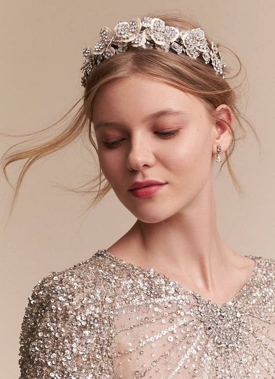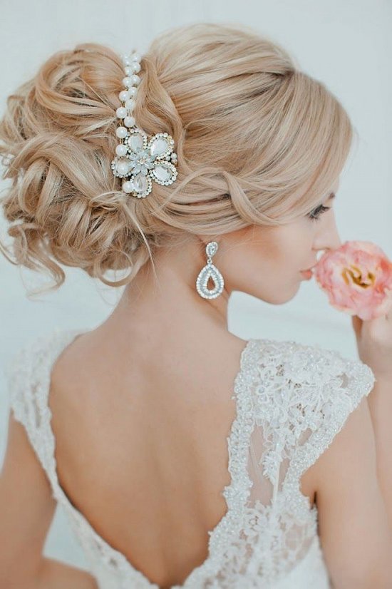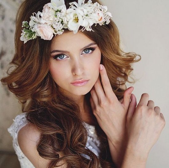 Стоит также упомянуть про такой важный момент как украшения для свадебной прически. Это может быть не только фата, которая в последнее время несколько утратила свою популярность, но и живые цветы, веночки, заколки с кристаллами, ободки и ленты. Очень красиво смотрятся свадебные прически с диадемами, которые превращают невесту в прекрасную принцессу.