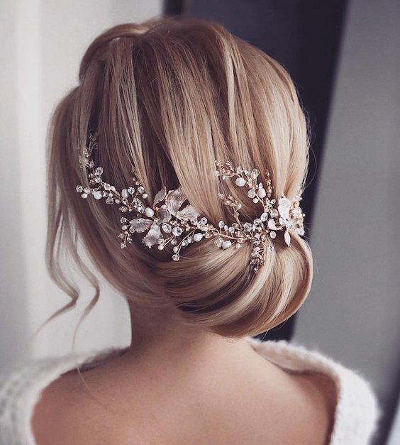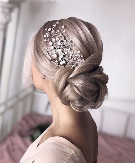 Дополнить такую прическу можно заколками, шпильками с жемчужинами, лентами или диадемой.