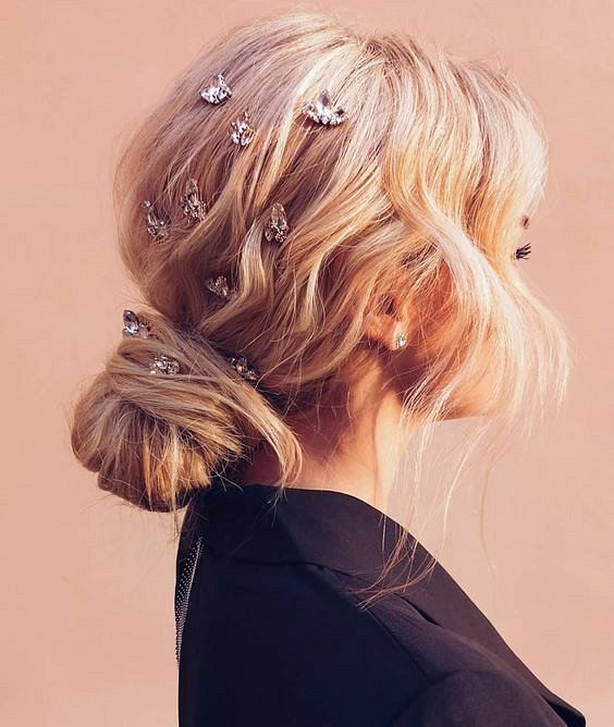 Пучки и узлы – это «вечные» бьюти-тренды. Такие вечерние прически на длинные волосы можно сделать своими руками, не прибегая к помощи парикмахера - достаточно собрать волосы в низкий пучок и дополнить прическу модными украшениями для волос. Еще один доступный вариант – пучок, выполненный при помощи «бублика» или валика. Чтобы придать образу непринужденности, оставьте по бокам несколько прядок. Потом их, при желании, можно будет превратить в легкие локоны.
