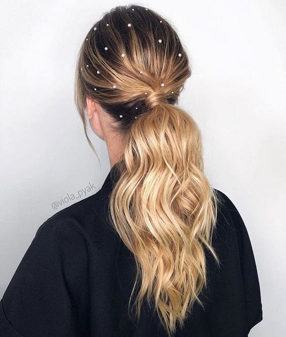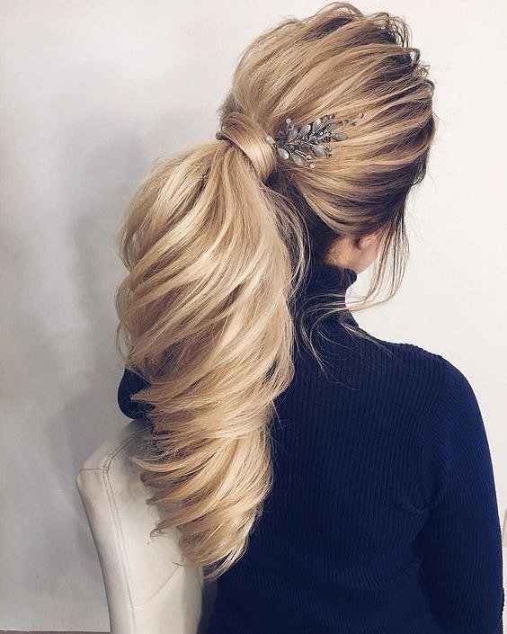 Конский хвост – одна из самых простых и популярных причесок, которые модницы носят «и в пир, и в мир». Самый модный вариант – низкий pony tail. Это лаконичная и элегантная прическа, которую всегда можно дополнить трендовыми акцентами: украшениями для волос, декоративной лентой и т. п.