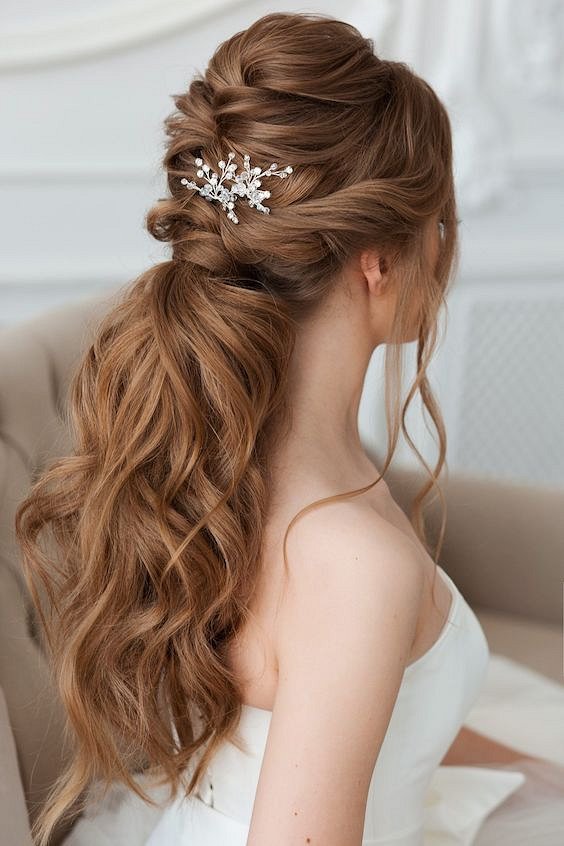 Многие счастливые обладательницы длинных волос выбирают для торжественных мероприятий высокие прически, которые не только выглядят роскошно, но и подчеркивают изящество шеи и ключиц.