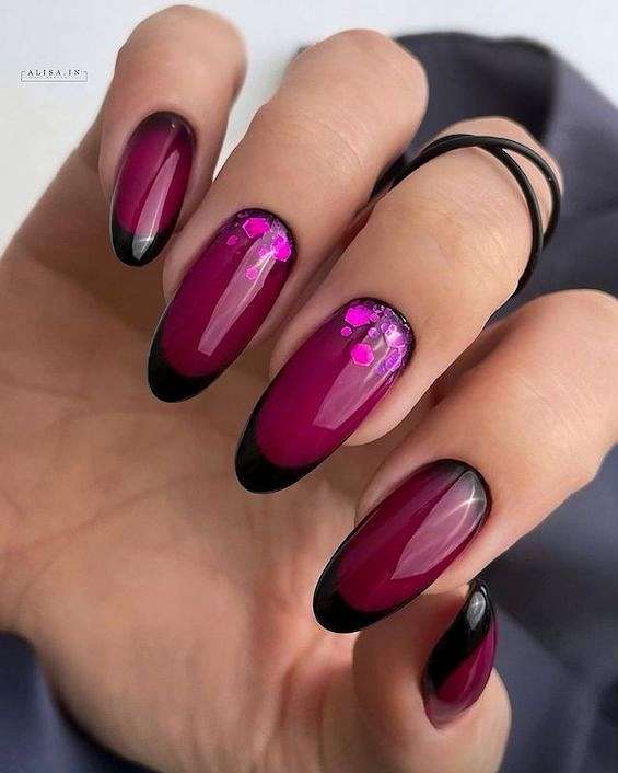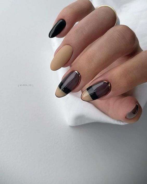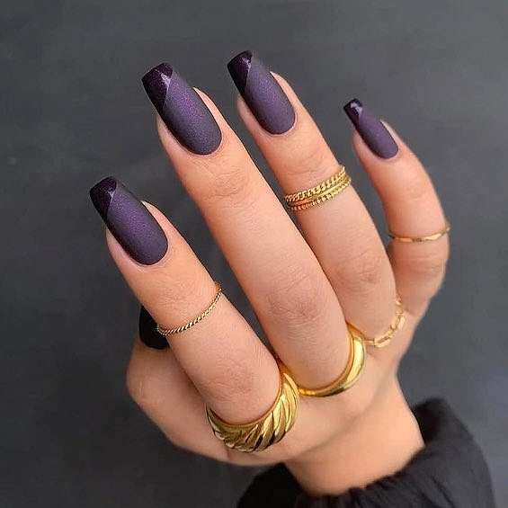 Embracing the enigmatic beauty of noble dark lacquer shades, the artful simplicity of matte finishes and the timeless elegance of french elements provide an enchanting pairing, allowing these profound colors to shine in their own solitary majesty.