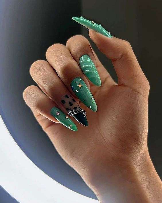 For those with longer nails, the artistic canvas knows no bounds, allowing for imaginative expressions that transcend boundaries. From daring ombre to the intricate charm of chain-adorned manicures, to the timeless allure of monochrome sophistication, the season's captivating shapes - almond and oval - form a mesmerizing fusion of art and elegance, setting the stage for an iconic and fashionable statement.