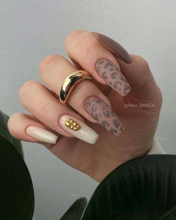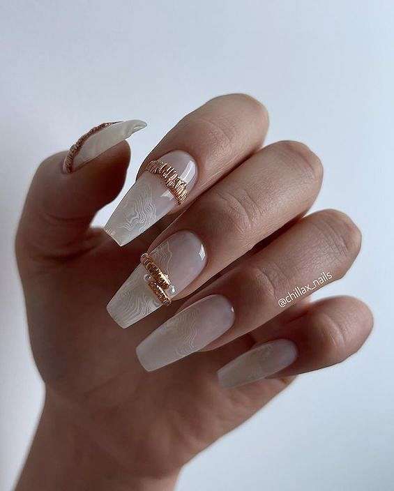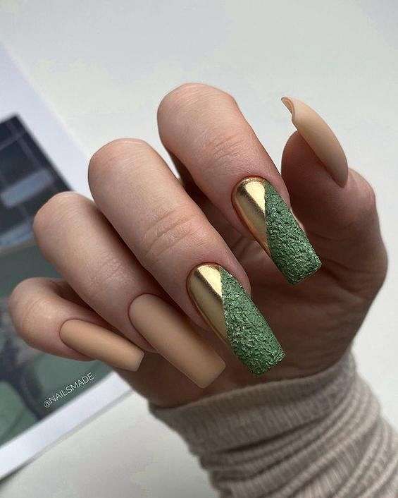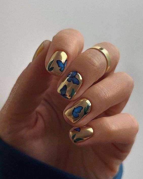 The allure of the gilded fall finds its expression in metallic polish and mesmerizing chrome manicures, adding a touch of ethereal magic to fingertips.