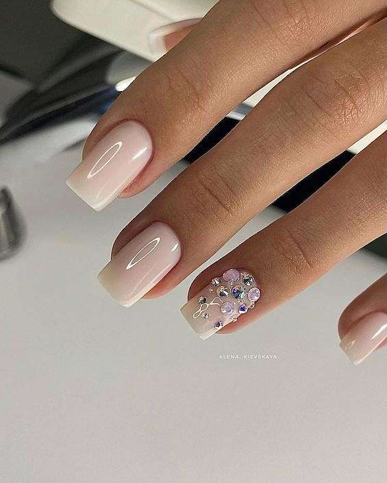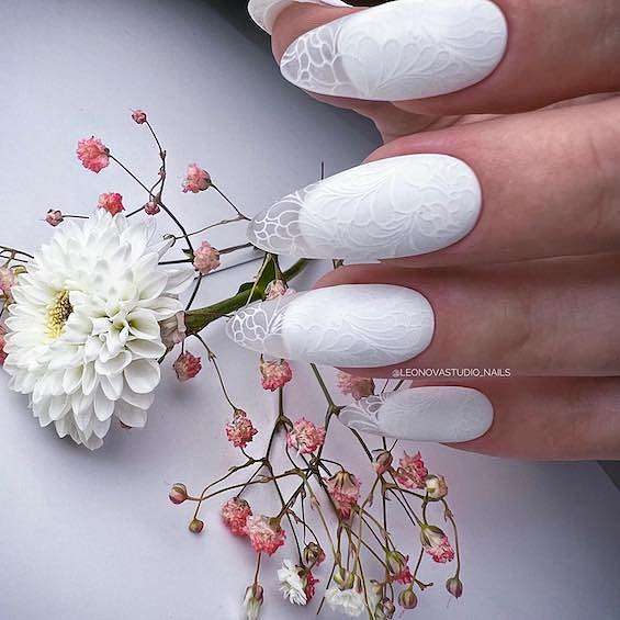 Gentle wedding manicures exude their charm on oval and almond-shaped nails. These shapes create a natural and balanced aesthetic. For those favoring square-shaped nails, a softened square shape is an ideal choice. Additionally, it's essential to avoid excessively sharp and long stiletto-like nail plates as they may appear overly aggressive and clash with the bride's overall image.