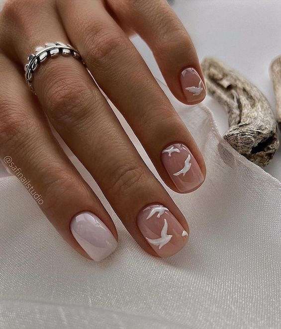 - Pretty Nail Art with Artistic Drawings (Flowers, Twigs, Leaves, Doves, Hearts)