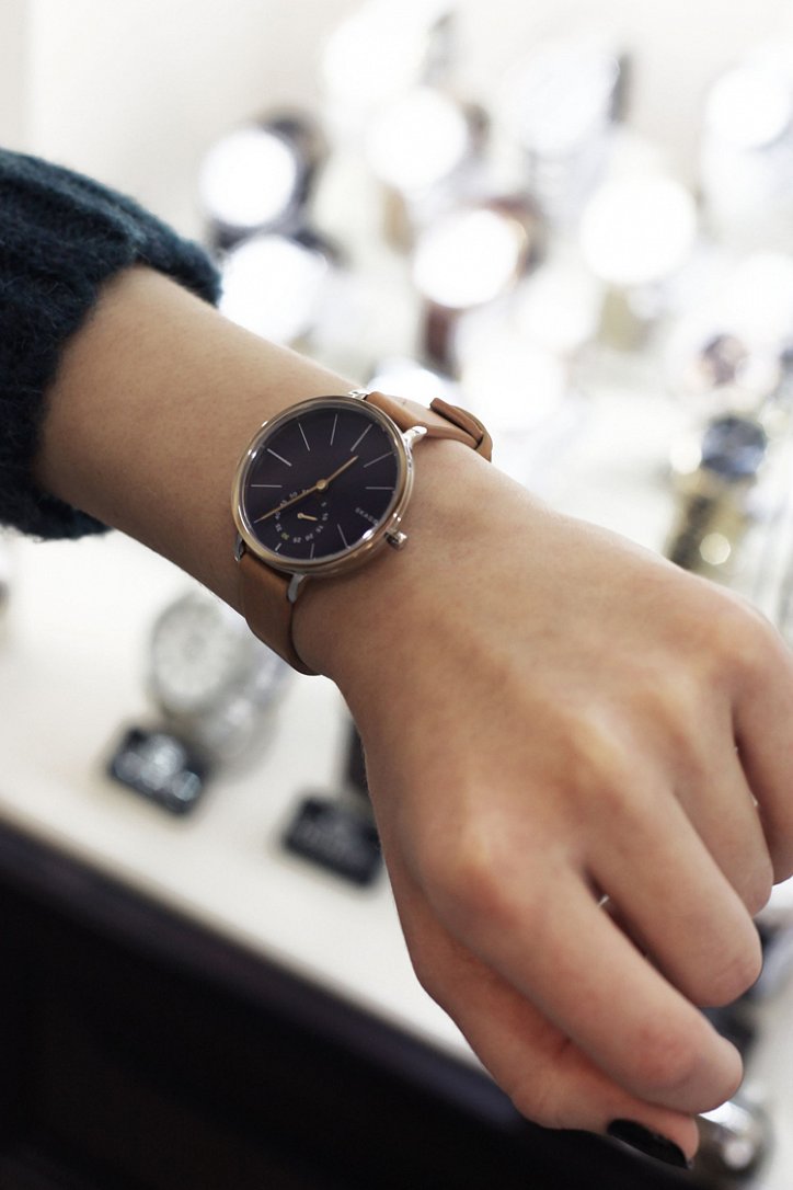 Если в вашем офисе дресс-код не строг и шеф лоялен к стилю smart-casual, выбирайте модели простых форм с неброским дизайном и стильными «изюминками» (подобные есть у Alfex, Skagen).
