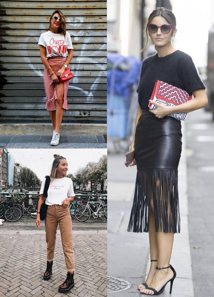 Футболка незаменимая вещь в каждом гардеробе. Она должна быть прямая, свободного кроя, чтобы между телом и тканью был воздух. Футболка может быть, как однотонная, так и с рисунком или принтом. Однотонная футболка сочетается практически со всем в гардеробе, и ее можно по-разному стилизовать, обыграть и использовать под ваше настроение.