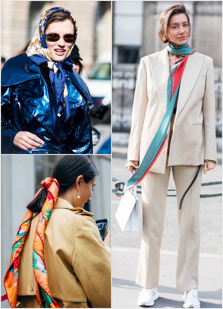 Шелковые платки очень красиво смотрятся весной и летом. Их можно повязать на шею, на волосы, вместо заколки, на кисть руки или на сумку. При таком использовании шелковый платок станет оригинальной деталью вашего образа.