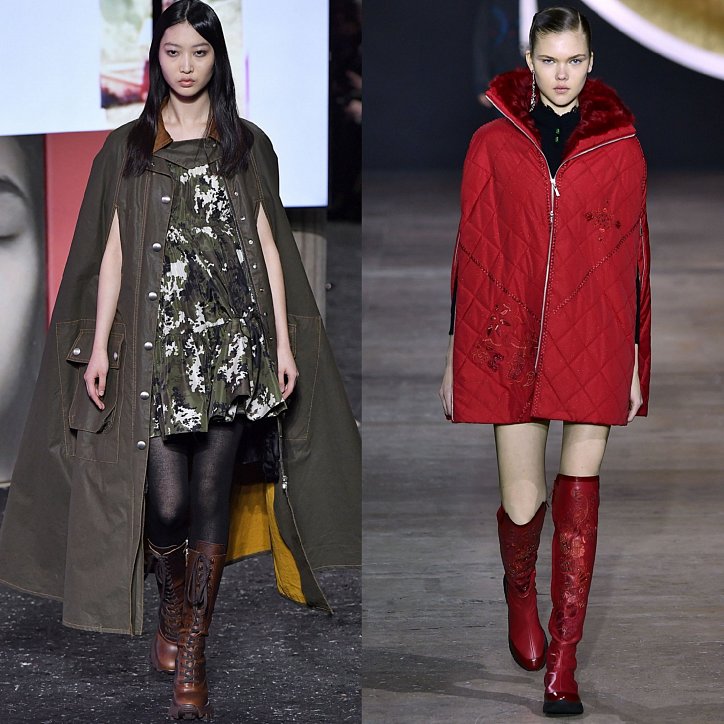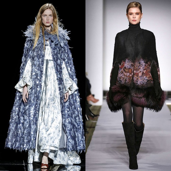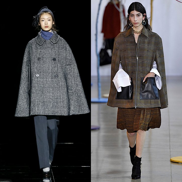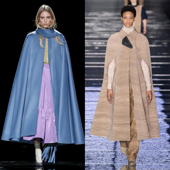 В будущем сезоне будут популярны «гибридные» кейпы: дизайнеры продемонстрировали не только кейпы-пальто, но и кейпы-дубленки, и кейпы-парки, и даже кейпы-плащи. Особенно много таких моделей было в коллекции Miu Miu.