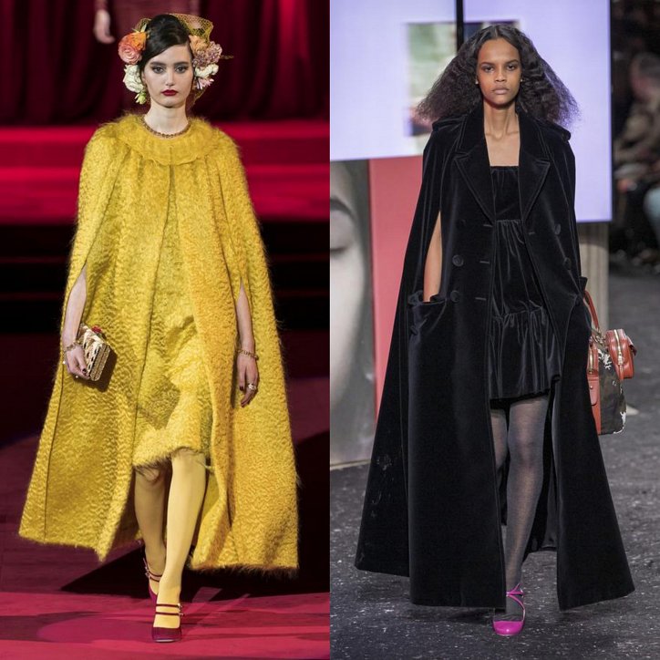 Вспомнить времена, когда в роскошных, сшитых из дорогих тканей ротондах выезжали в свет знатные дамы, предлагают бренды Dolce & Gabbana и Dennis Basso. Длинные и укороченные, украшенные мехом, пайетками и принтами, выполненные из роскошного бархата, тафты или причудливого жаккарда кейпы станут достойными спутниками и изысканного вечернего туалета, и утонченного коктейльного платья.