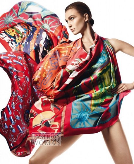 Американская супермодель Карли Клосс (Karlie Kloss) приняла участие в съемках яркой и динамичной рекламной кампании новой коллекции легендарных платков Hermès. Автором снимков выступил британский фотограф Дэвид Симс (David Sims).