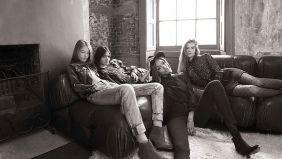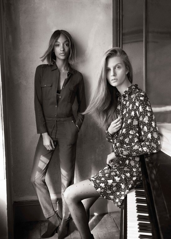 На черно-белых фото модели Jourdan Dunn, Sam Rollinson, Flo Kosky и Hollie May Saker демонстрируют осенние-зимние новинки бренда - разнообразные джинсы, комбинезоны, кожаные куртки, жакеты из денима, а также принтованные платья и блузы.