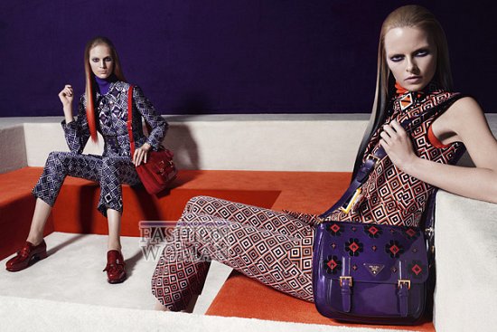 Известные модели Анна Вялицына (Anne Vyalitsyna), Магдалена Фраковяк (Magdalena Frackowiak), Иселин Стейро (Iselin Steiro), Эльза Луендиканд (Elza Luijendijkand), Мэдисон Хидрик (Madison Headrick) и Ванесса Аксенте (Vanessa Axente) приняли участие в рекламной кампании коллекции женской одежды и аксессуаров Prada осень-зима 2012-2013.