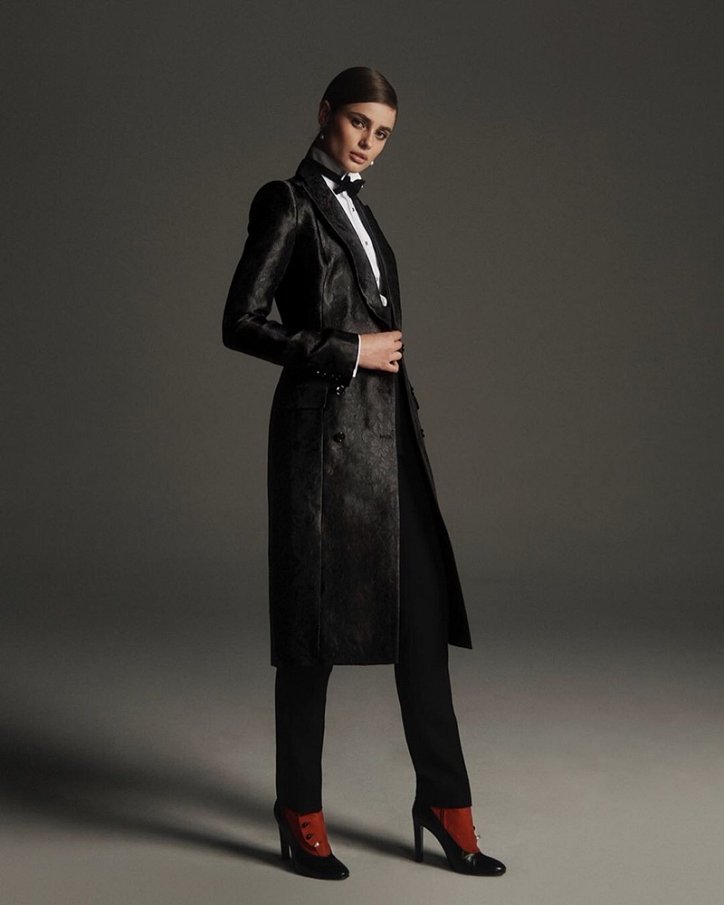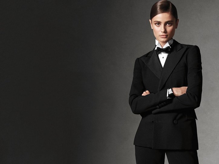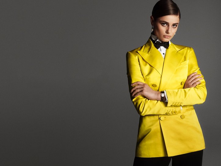 Главной героиней кампейна стала американская супермодель Тейлор Хилл. На фото американка предстала в элегантных брючных костюмах, ярких двубортных жакетах, пальто и лаконичных вечерних платьях.