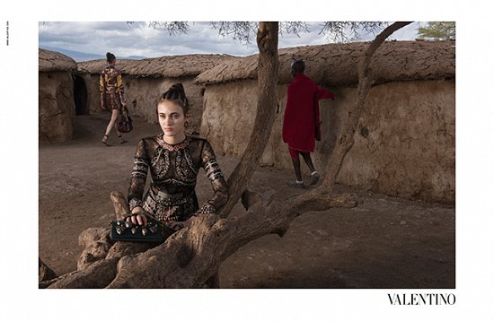 Африканские мотивы весенне-летней коллекции Valentino нашли свое продолжение и в рекламной кампании марки. Местом съемок был выбран национальный парк Амбосели в Кении. Именно туда и отправилась съемочная группа во главе с известным американским фотографом Стивом МакКарри, автором знаменитого снимка «Афганская девочка». Кроме моделей перед объективом фотографа позировали члены племени Масаи.
