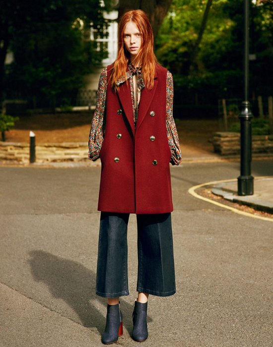Джинсовые кюлоты, удлиненные жилеты, полушубки из искусственного меха и многое другое в новой рекламной кампании Zara TRF осень-зима 2015-2016.