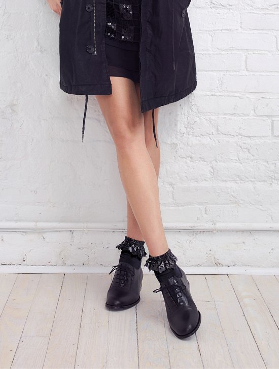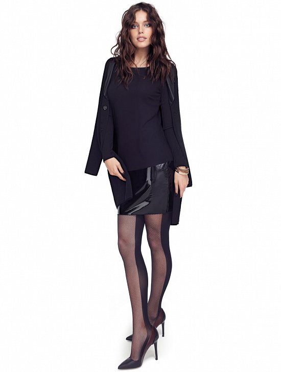 Стройная и соблазнительная американка представила осенне-зимние новинки от итальянского бренда - разнообразные колготы (ажурные, однотонные и с рисунком), леггинсы (трикотажные, бархатные, кожаные), а также чулки и носочки с оборочками.