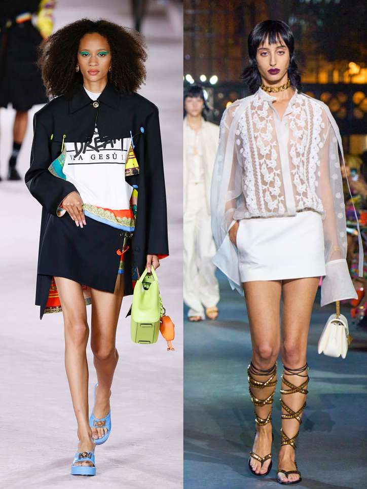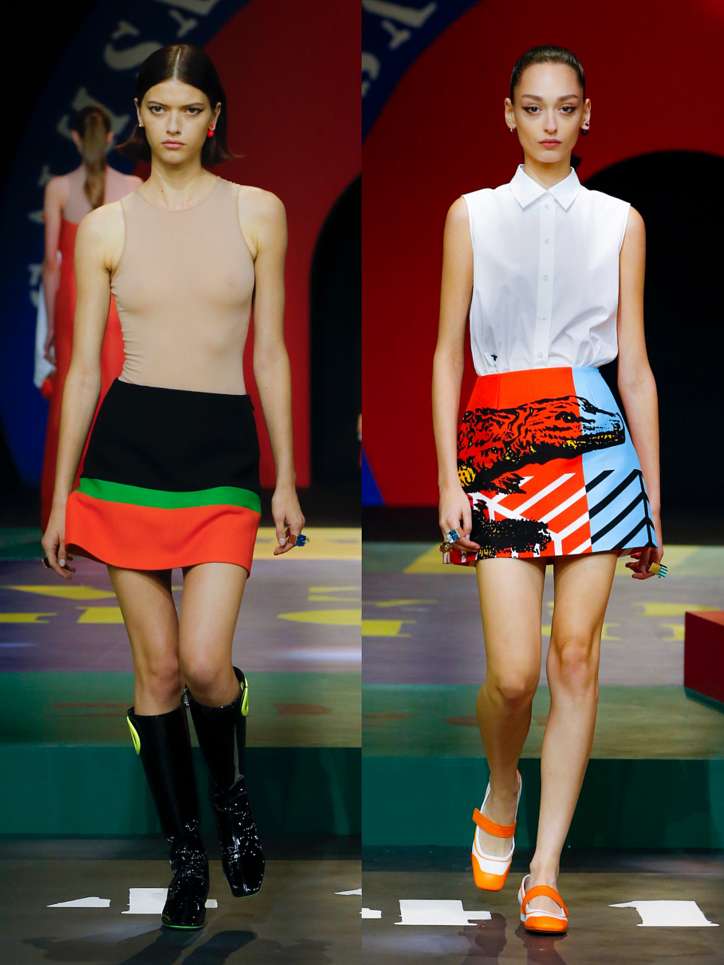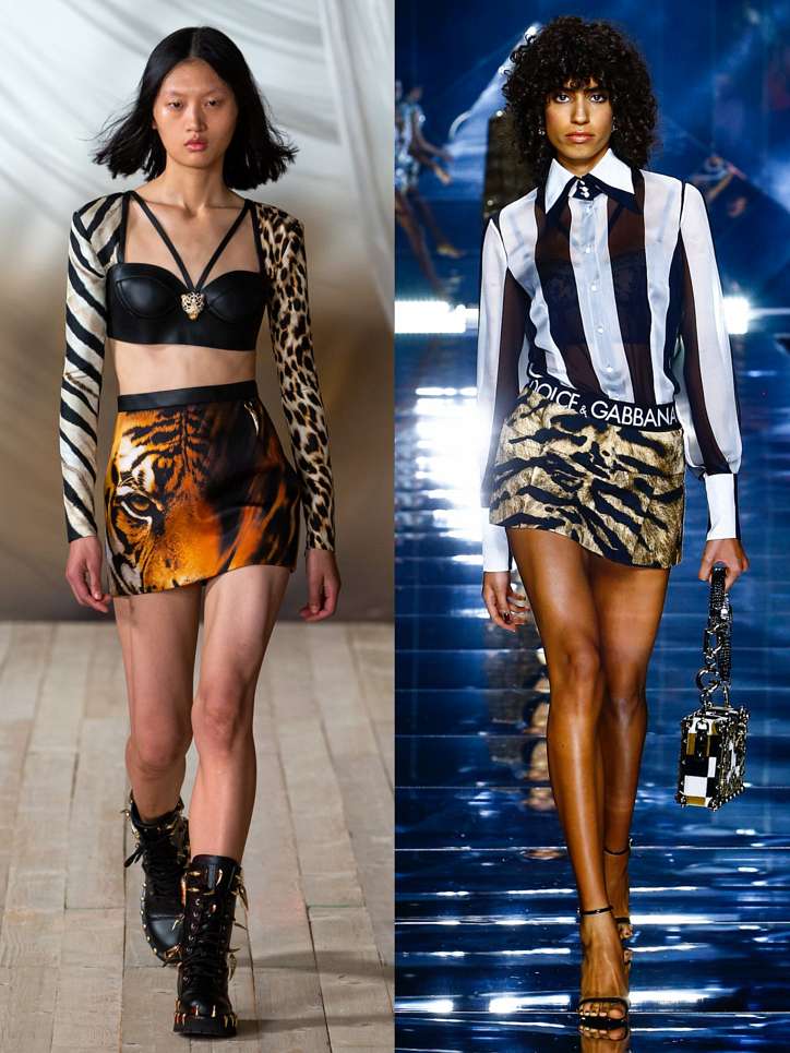Christian Dior и Roberto Cavalli продемонстрировали яркие мини, украшенные графическими и анималистическими принтами, у Prada нельзя было не заметить атласные юбочки со шлейфами, а дом моды Chanel объединил сразу несколько трендов, предложив кожаную мини-юбку с бахромой и вязаную модель.