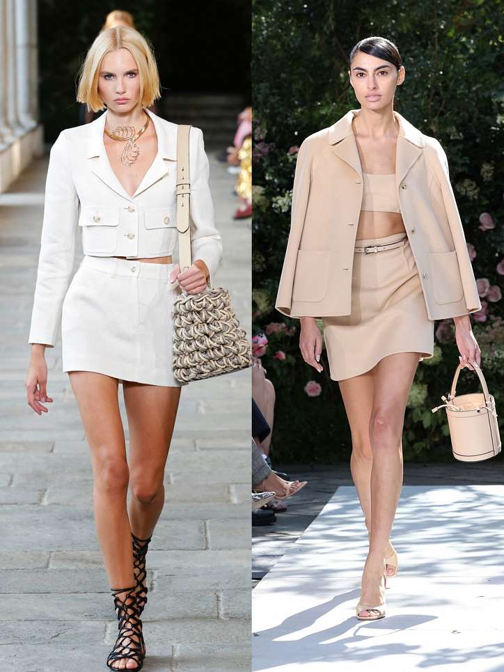 Интересные версии были и в коллекциях Max Mara, Miu Miu, Valentino, Michael Kors. Причём далеко не все из них выглядели дерзко и экстравагантно – дизайнеры продемонстрировали и элегантные образы с мини-юбкой, которые вполне будут уместны даже в деловом стиле. Особенно стильно смотрятся белые и бежевые модели прямого кроя.