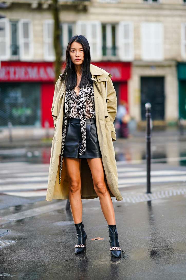 Ну а пока погода «не разрешает» такой лук, носите мини-юбку с курткой-косухой, классическим тренчем, уютной толстовкой или свитером. Модный штрих – «верх» должен быть заправлен за пояс юбки (хотя бы частично).