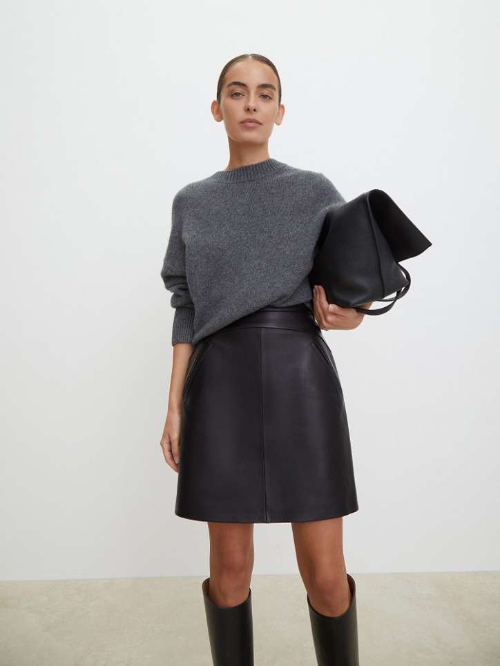 К счастью, мини хорошо смотрится практически с любой обувью: от лодочек на шпильке и шлёпанцев на каблучке до массивных ботинок и высоких сапог.