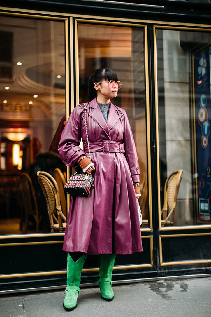 Яркие модели сапог сочетайте с яркой одеждой. Например, с кожаным плащом или пальто. Получится контрастно, смело и неординарно.