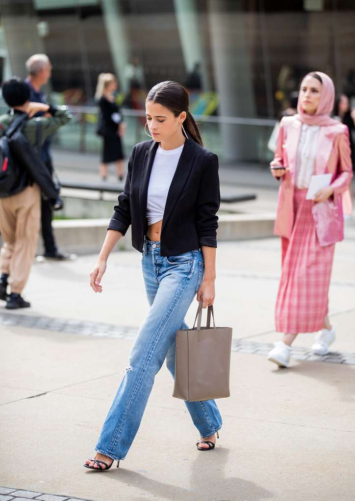 - Майка-топ на широких или тонких бретельках в белом, сером, черном цвете. Топ должен быть однотонный, без комбинаций и принта.
