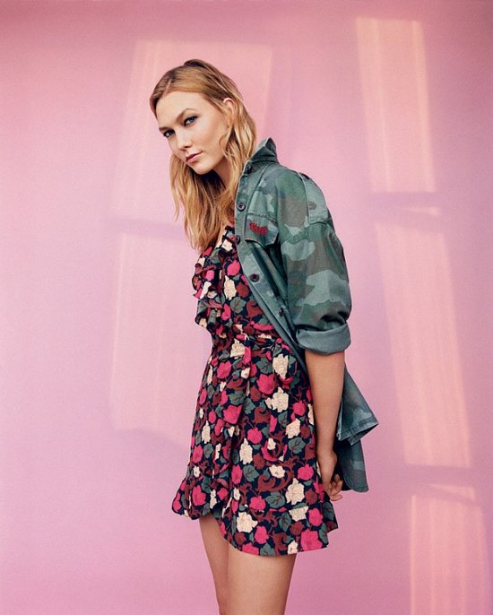 На днях свет увидел новый лукбук с американской супермоделью в главной роли. На фотографиях Карли демонстрирует весенне-летние новинки бренда - кожаные косухи, разнообразные топы, бомберы, тренчи, кожаные брюки, джинсы с высокой талией, цветастые сарафаны и облегающие короткие платья.
