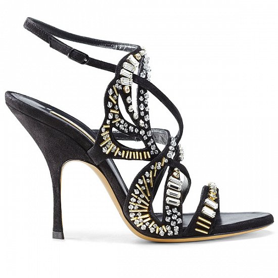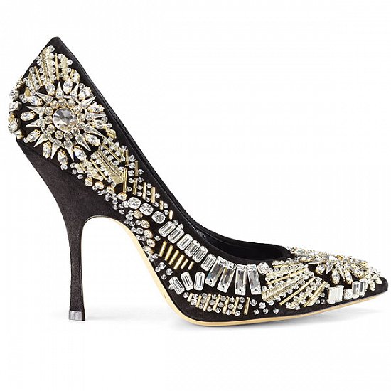 В новую коллекцию обуви Casadei Pre-Fall 2014 вошли роскошные туфли и ботильоны из кожи и замши, щедро украшенные кристаллами и бисером, а также фирменные босоножки на шпильке Blade.