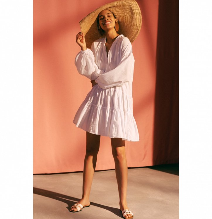 Крупные украшения, плетеные аксессуары и обувь нейтральных оттенков прекрасно дополнят летний образ.