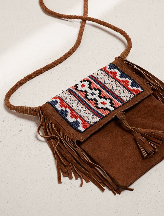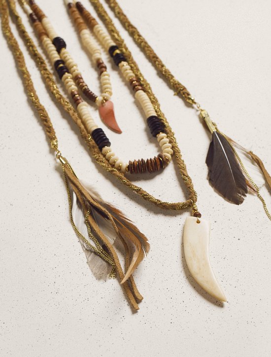 В качестве деталей испанский бренд предлагает аксессуары в этно-стиле выдержанные в коричневой гамме.
