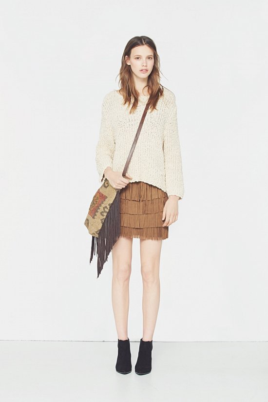 В их коллекции - замшевые и кожаные плащи, свободные блузы в крестьянском стиле, джинсовые юбки на пуговицах, шифоновые платья с принтами, удлиненные кардиганы, юбки и кейпы с бахромой, комбинезоны, объемный трикотаж, а также кожа, деним и кружево. В цветовой гамме преобладают спокойные осенние оттенки - бежевый, песочный, коричневый, сливочный, серый, кремовая роза, а также черный, белый и синий.