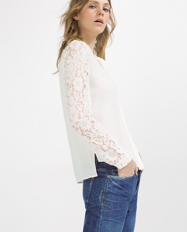 Украшением этой белоснежной блузы Zara стали кружевные рукава.