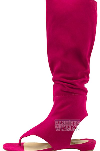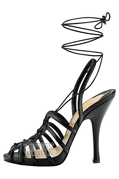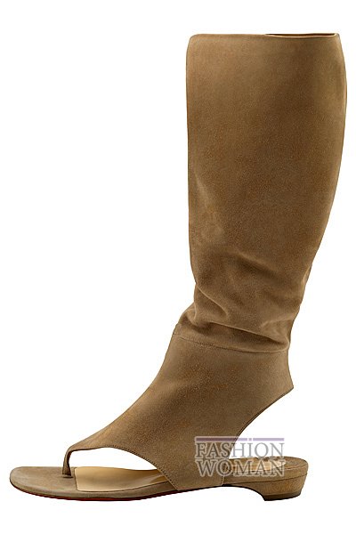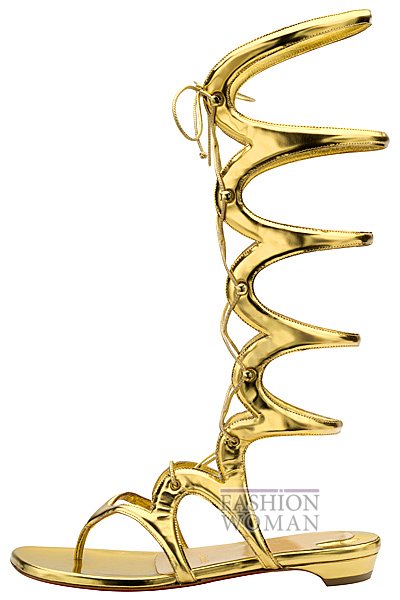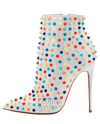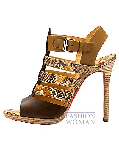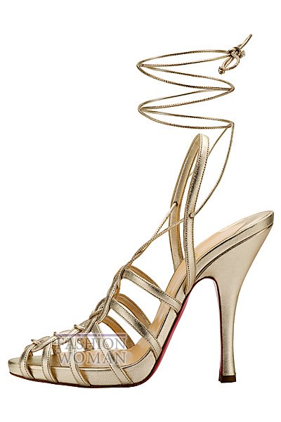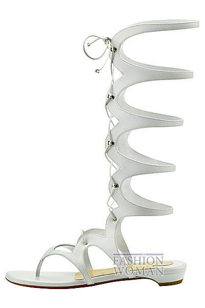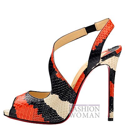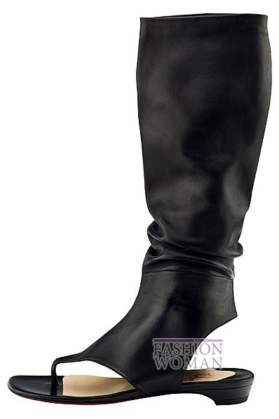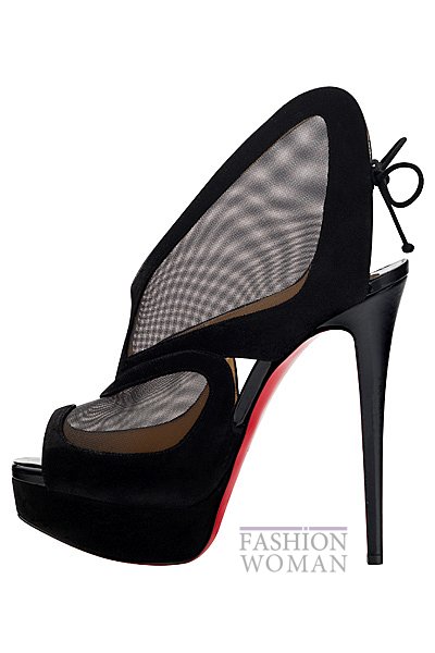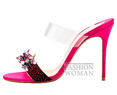 Не изменяя своему фирменному стилю маэстро Лабутен предложил на суд публики классические лодочки на высоком каблуке, изящные босоножки на умопомрочительной шпильке, эффектные ботильоны, яркие сандалии, модные лоферы и босоножки на танкетке.