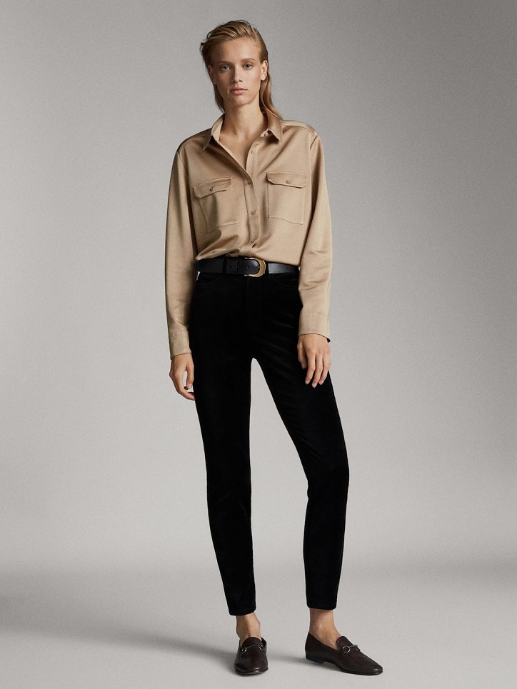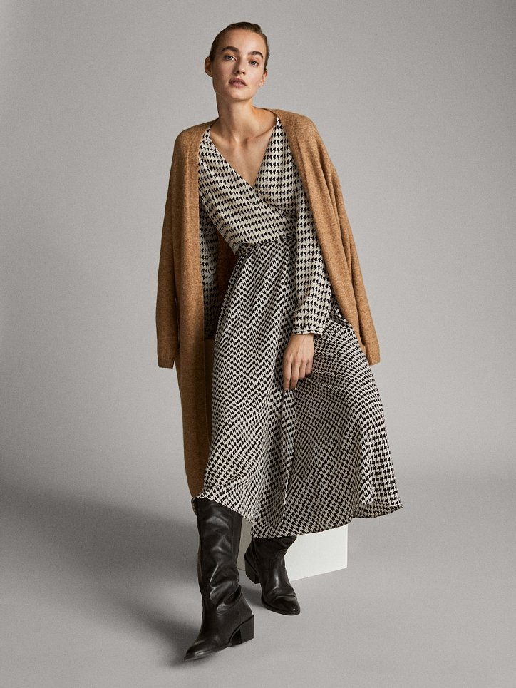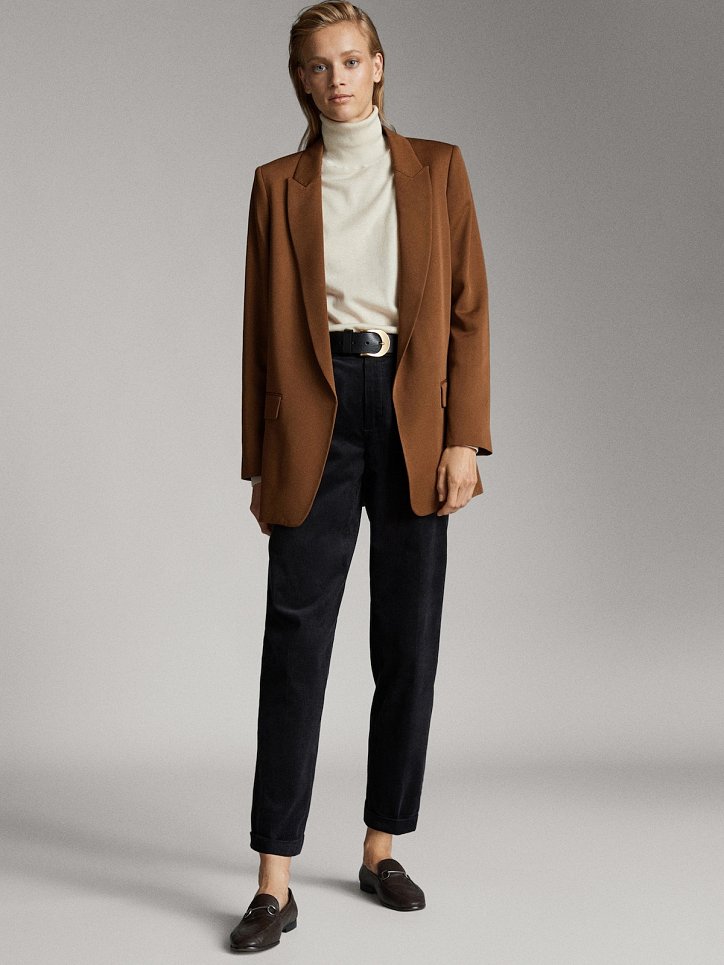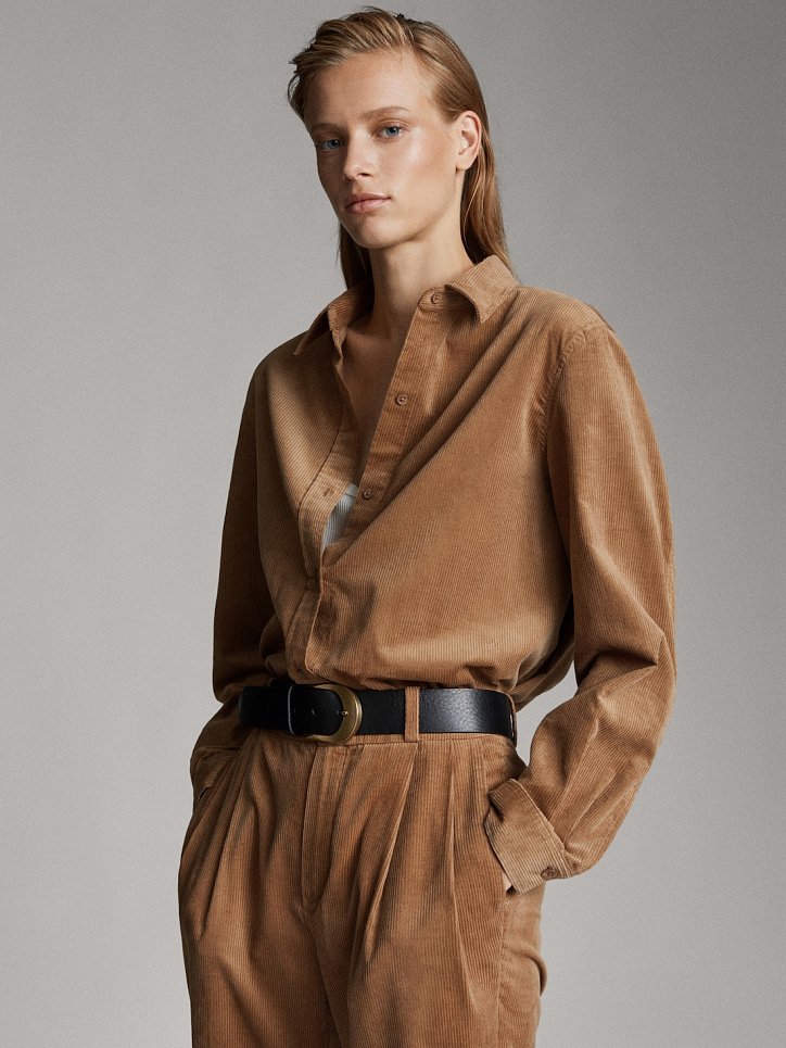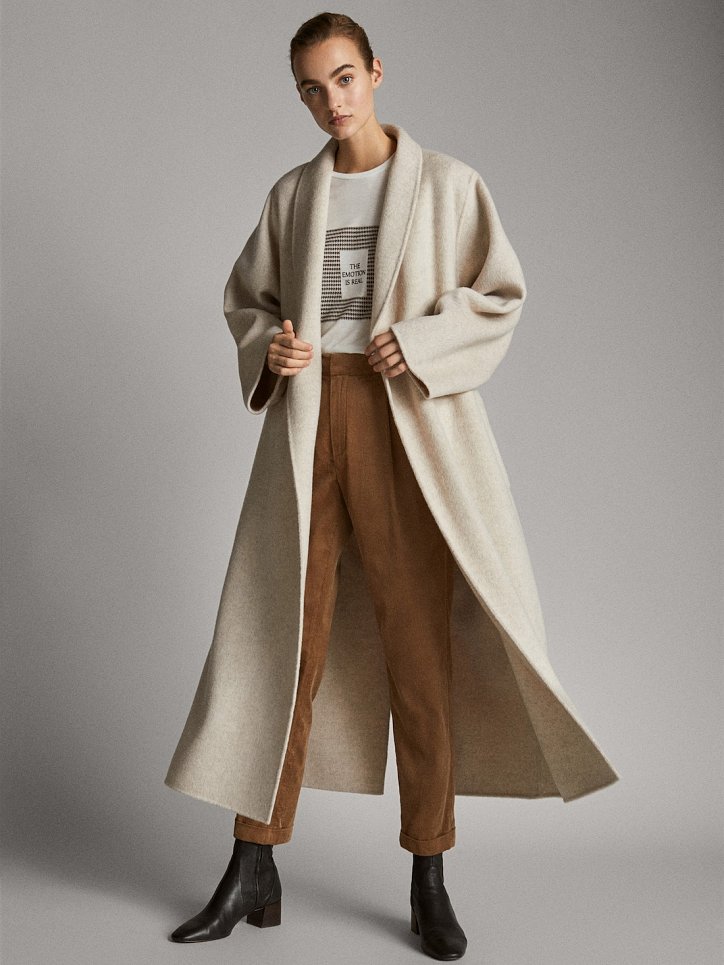 Ее основу составили однотонные и принтованные платья, классические и оверсайз пальто, шелковые блузы, широкие брюки, жакеты в мужском стиле, костюмы из вельвета, а также уютный трикотаж.