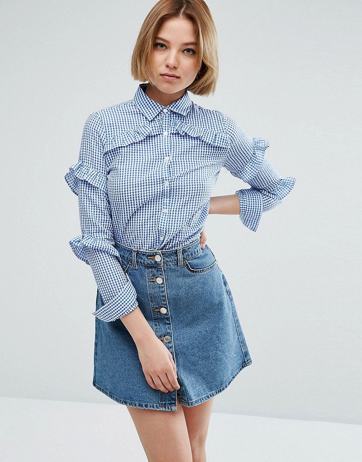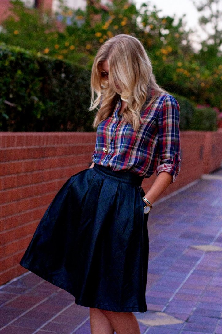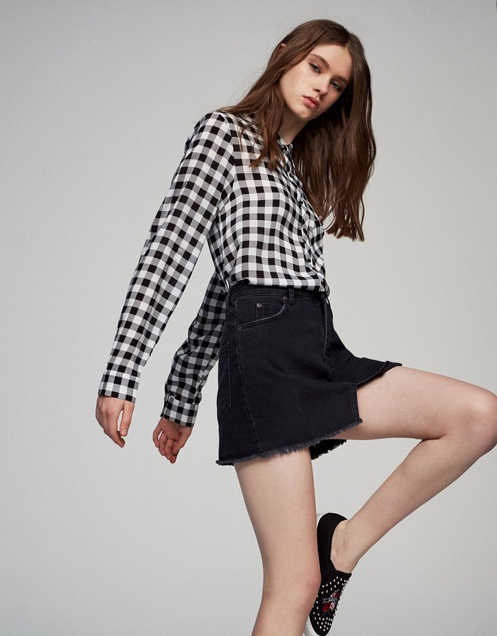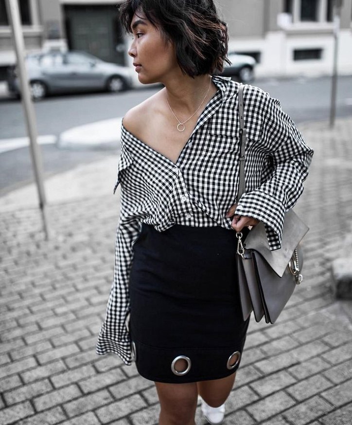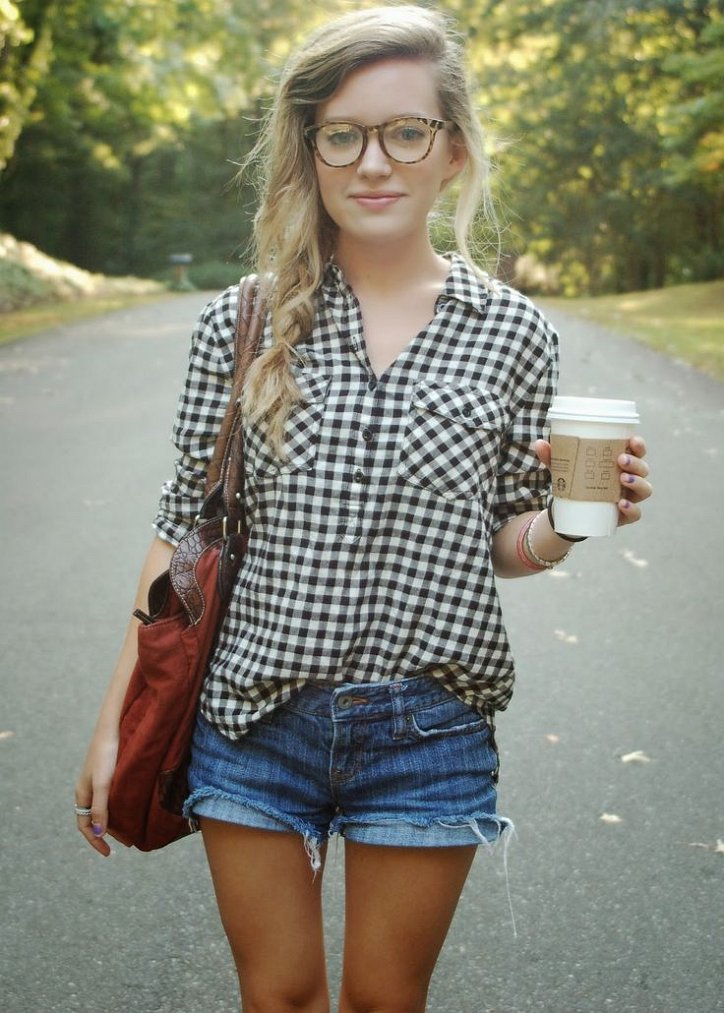 Не менее популярна и пара рубашка в клетку плюс мини-шорты. Гармонично смотрится клетчатые рубашки с кюлотами и юбками.