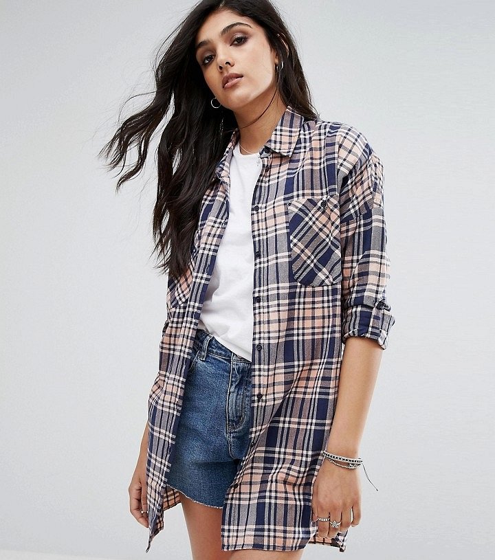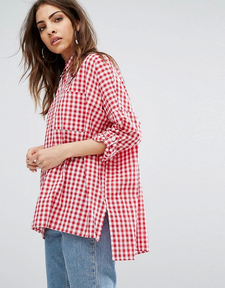 Придать классическому или свободному крою «изюминку» можно при помощи асимметрии: в случае с рубашками дизайнеры предлагают неровную длину – спинка длиннее переда. Примеры таких рубашек в клетку – на фото Daisy Street и New Look.