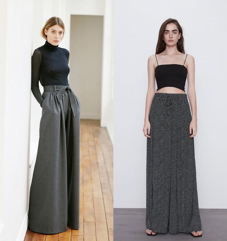 Особенности кроя (высокая талия, достаточная длина и широкие штанины) делают брюки-палаццо не только универсальной моделью, но и настоящей корректирующей палочкой-выручалочкой для многих женщин.