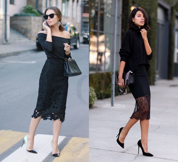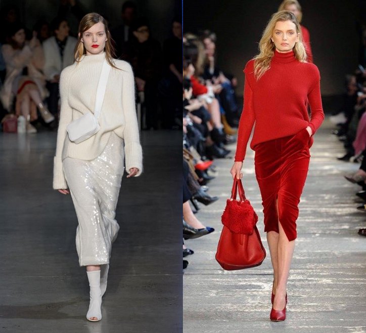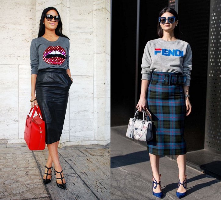 Самое популярное вот уже несколько сезонов подряд сочетание – юбка-карандаш плюс свитер или пуловер. Выглядит такой комплект свежо и эклектично, так что модницы с удовольствием экспериментируют, создавая образы и в монохроме, и играя на контрастах. Идеальный вариант для холодов – юбка-карандаш ниже колена, сшитая из плотной ткани, замши или кожи, и свободный свитер крупной вязки (носить его можно и навыпуск, и заправленным).