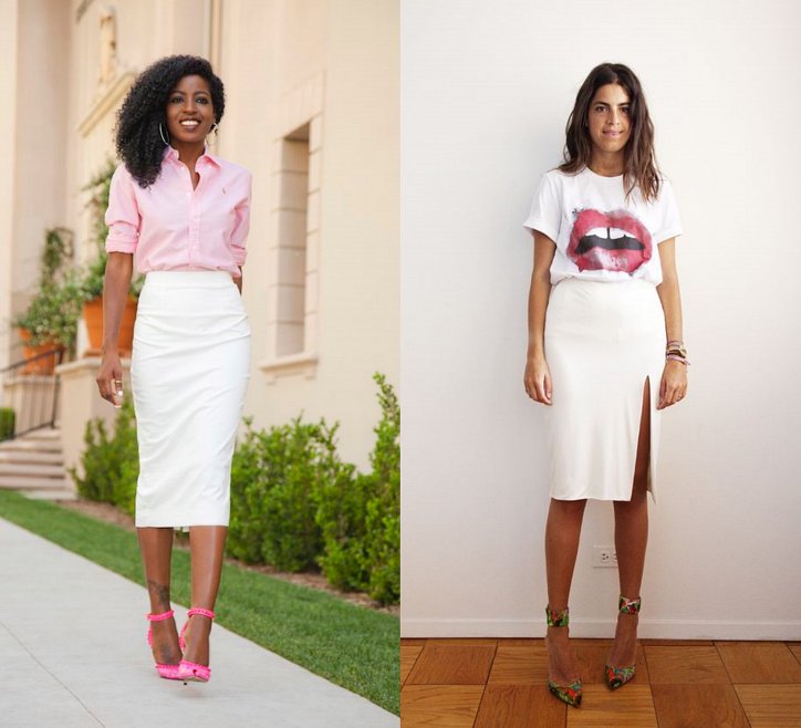 Белая юбка-карандаш в летнем гардеробе тоже придется кстати – она прекрасно комбинируется практически с любым «верхом» и эффектно оттеняет загар.