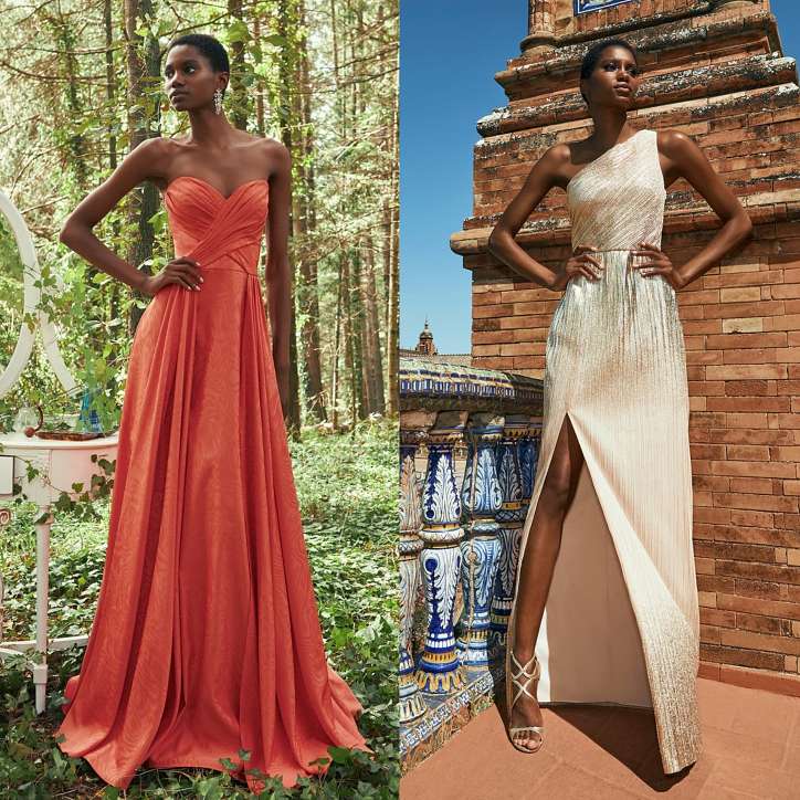 Что же касается фасона, то он может быть слегка вычурным и сложным. Величественный и авторитетный Дракон предпочитает быть ярким и заметным. Стоит учесть и свойства дерева как главной стихии года. Все это вместе даёт нам сразу несколько направлений в поисках моделей: ищите броские платья с «изюминкой» и блестящие струящиеся.