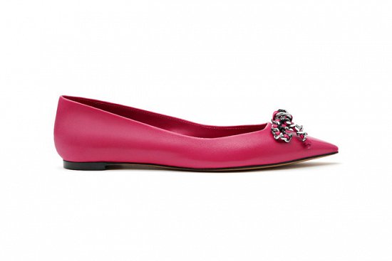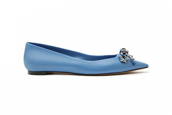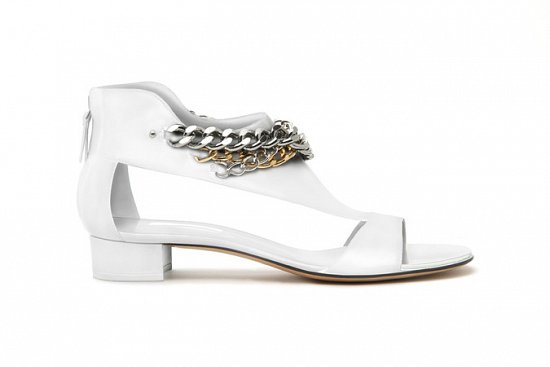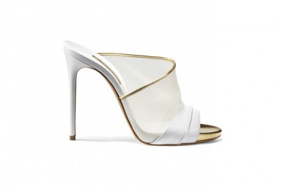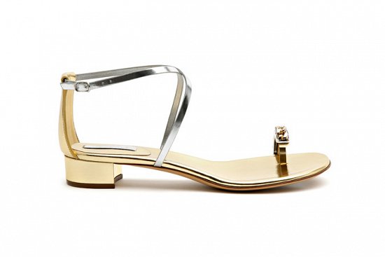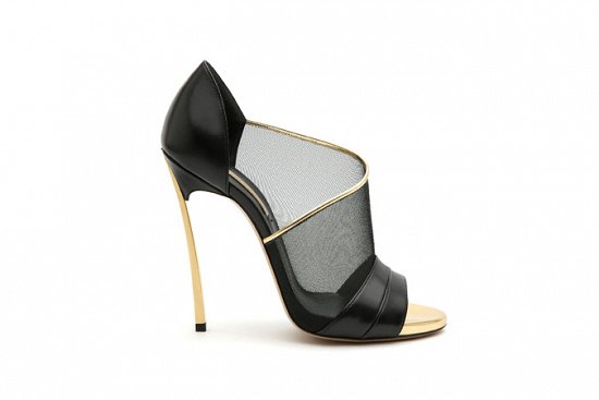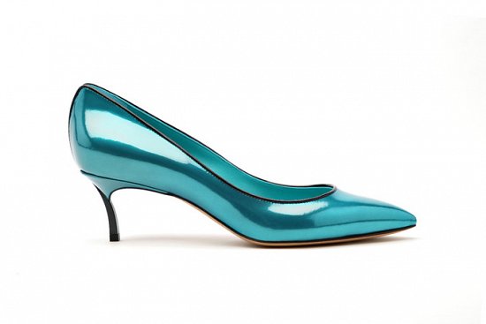 Поклонницы итальянской марки смогут по достоинству оценить модели из металлизированной кожи, замши, лака и текстиля, со вставками из сетки. Традиционно в коллекции превалируют высокие каблуки - толстые устойчивые и фирменные стальные Blade. Для тех, кто отдает предпочтение все же более комфортной обуви на низком ходу, дизайнер предлагает яркие балетки с острым носком и сандалии на невысоком квадратом каблуке.