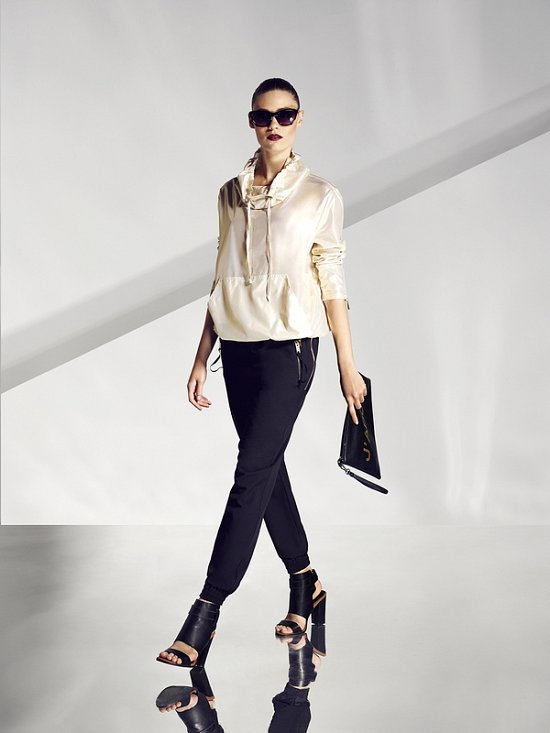 Вторая линия женской одежды Mohito осень 2014 демонстрирует другую сторону женственности. Блестящие материалы и золотые принты причудливо сочетаются в ней с непринужденным и свободным street style. Игра контрастов видна во всем: узкая серебристая юбка выступает в паре с кофтой в спортивном стиле, а куртка-«бомбер» надета поверх шифонового платьица с летящей юбкой.