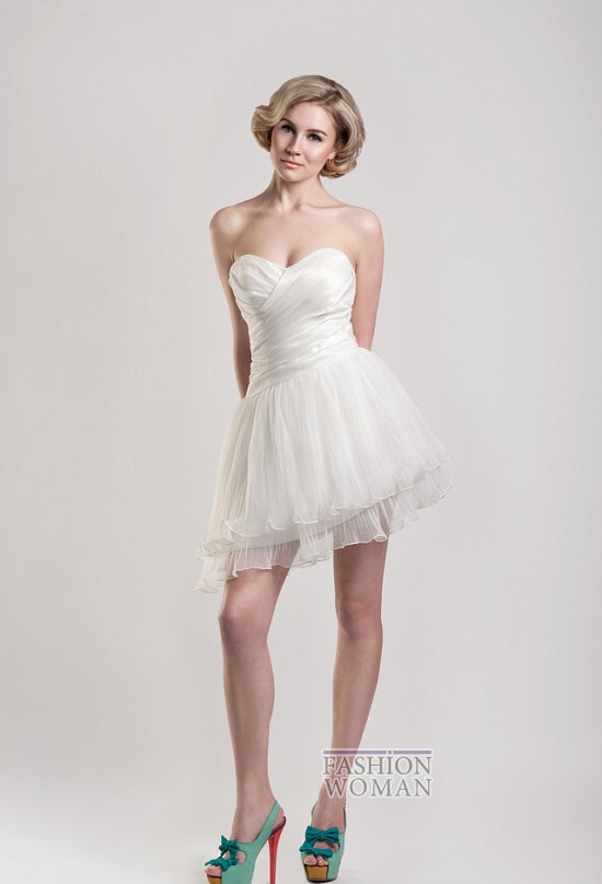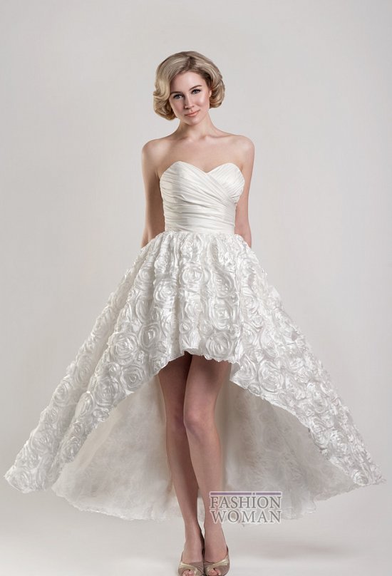 Изюминкой же новой коллекции стал элегантный свадебный брючный костюм и изысканное платье с ассиметричным подолом.