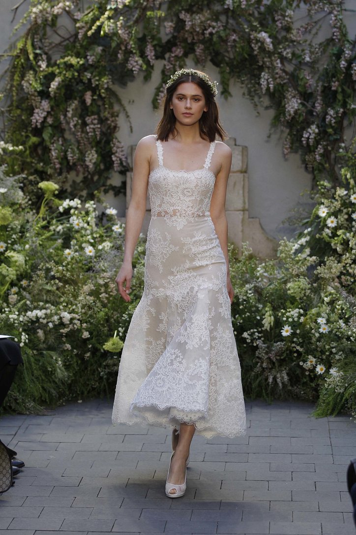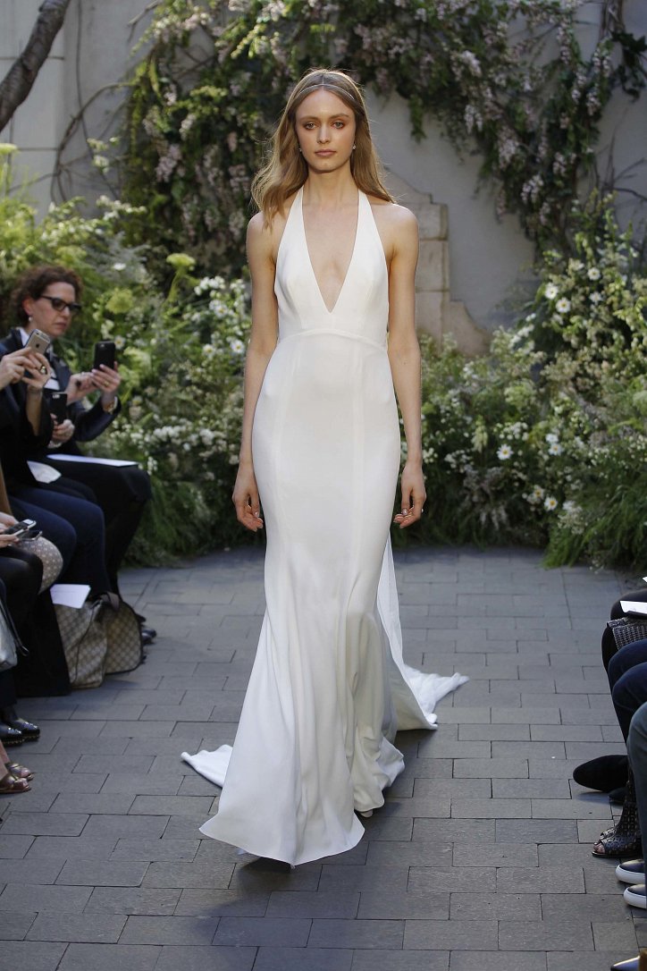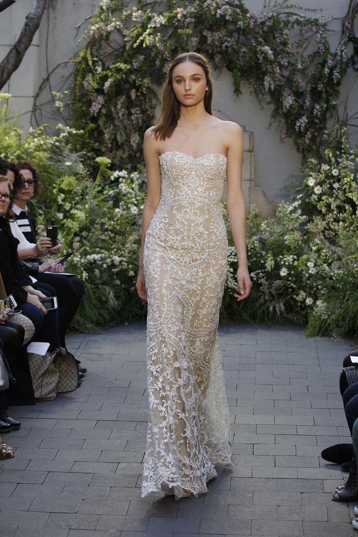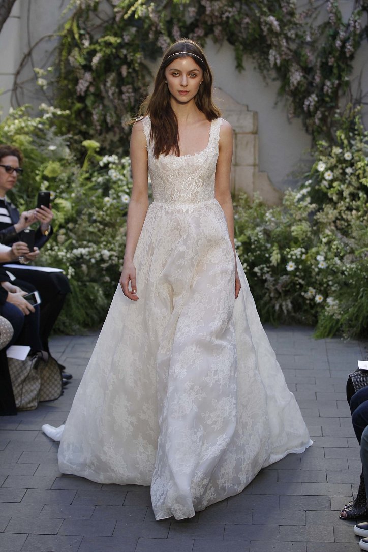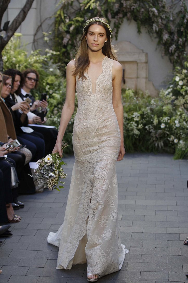 На фоне цветущих глициний проплывали нежные эфирные создания в легких белых и кремовых платьях без корсетов, «косточек» и бисерной вышивки. Вместо всех этих традиционных элементов свадебных платьев Monique Lhuillier предложила модели в бельевом стиле, лифы-иллюзии, многоярусные юбки, объемный цветочный декор, платья-маллет с юбками похожими на огромные воланы, обольстительные кружевные платья-«русалки» и даже комбинезон с отстегивающейся юбкой из воздушного тюля!