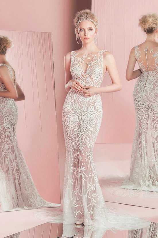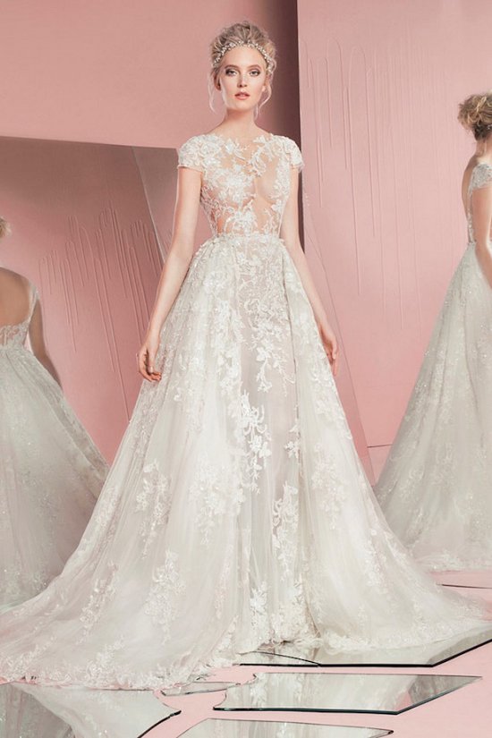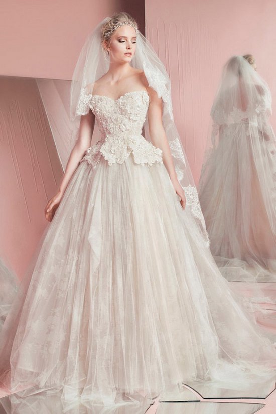 Ливанский дизайнер предлагает в следующем году выходить замуж в роскошных свадебных нарядах из шелка, органзы и тюля, богато декорированных кристаллами, бисером, аппликацией и кружевом.